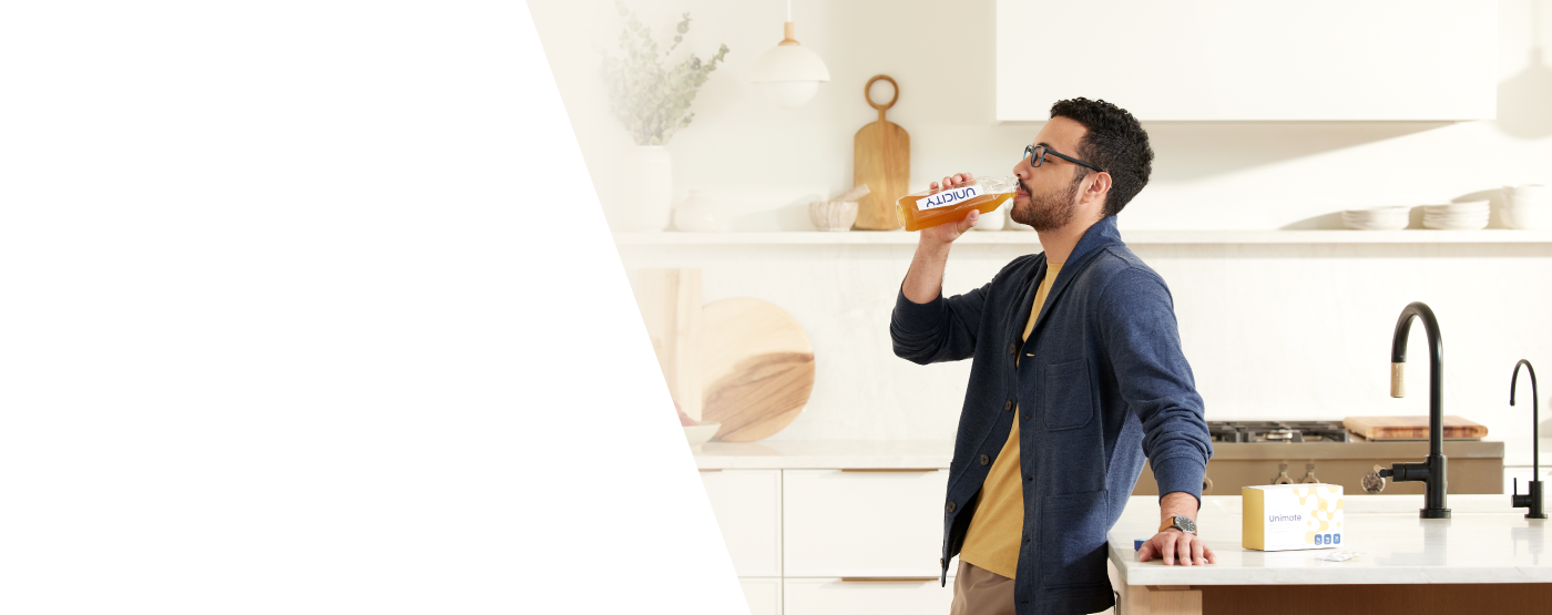 Get up and go with Unimate. This highly concentrated yerba mate drink contains a unique blend of plant compounds known to: Support GLP-1 production Improve mood Boost energy Heighten mental clarity Suppress appetite Plus, it's sugar free!